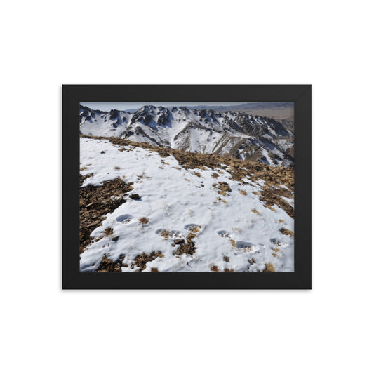 Framed poster, Snow leopard track on ridge in Mongolia 2