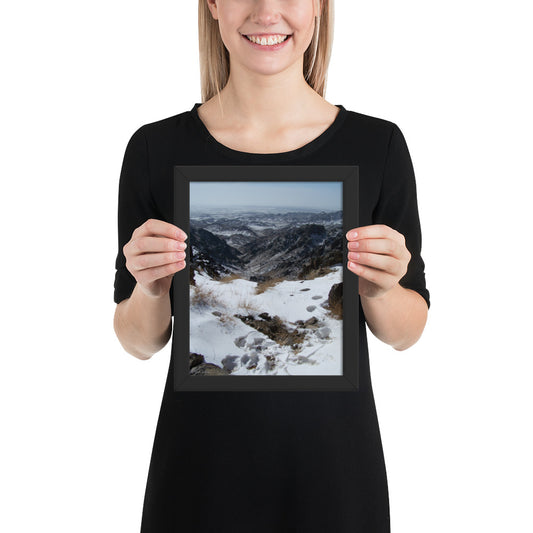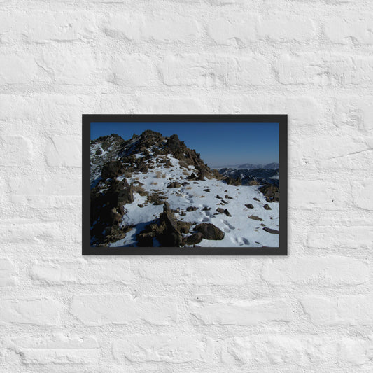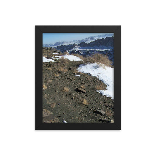Framed poster, Snow leopard track on ridge in Mongolia 2
